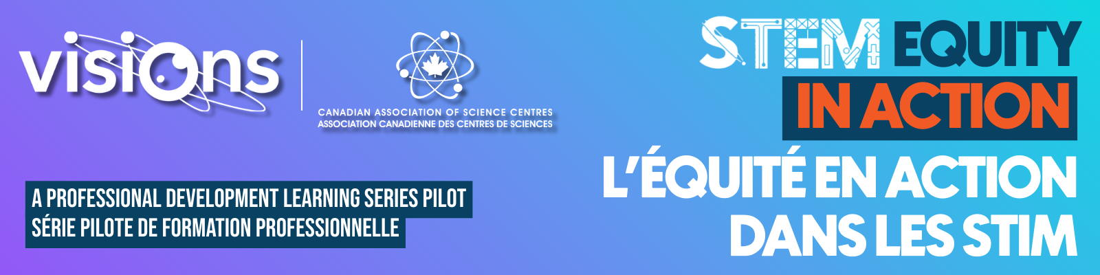 Nous sommes ravi.e.s de vous présenter Équité en action dans les STIM, un programme pilote de perfectionnement professionnel en cinq modules qui sera lancé en octobre 2025. Développée en partenariat avec Visions of Science et l’Association canadienne des centres de sciences (ACCS), cette série de formations en direct destinée aux cohortes a été mise sur pied dans la foulée d’un processus d’évaluation des besoins qui a révélé la nécessité de pouvoir compter sur des outils pratiques, un langage commun et une réflexion plus approfondie sur l’équité dans les STIM.